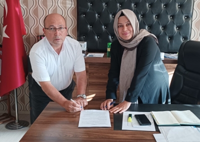 Sözleşme, Kütahya Şube Başkanımız Sabahattin Ödemiş ile Kuruçay Belediye Başkanı Rengül Atıcı arasında imzalandı.